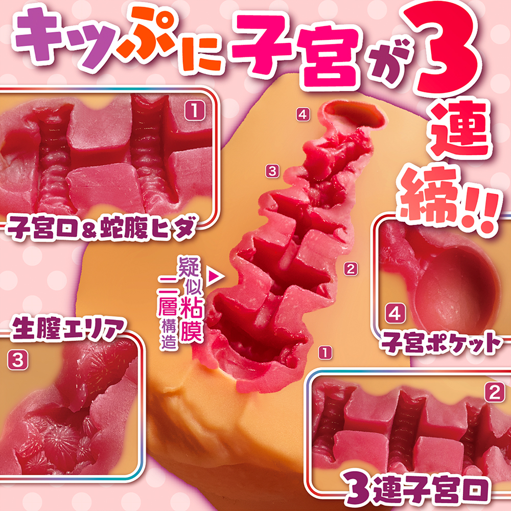 内部の前半は狭口肉厚の「3連子宮口」が締め付けるハード刺激。